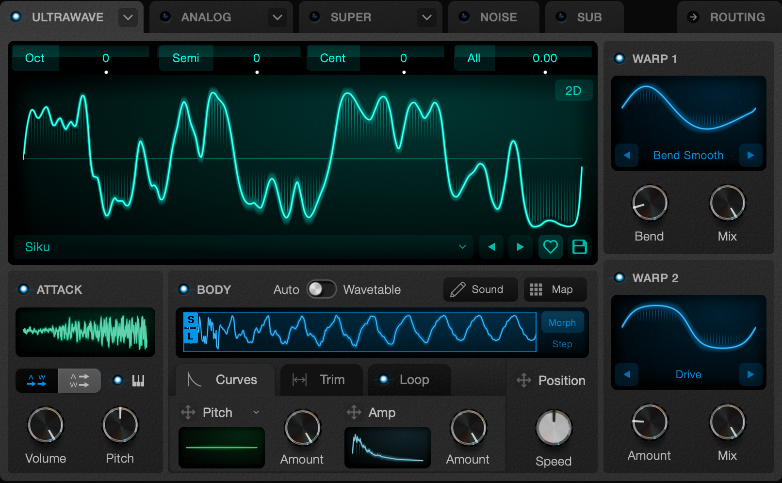 This section controls playback of the Wavetable Body section of an UltraWave sound.