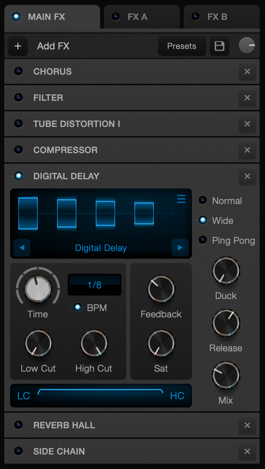 Clicking the Routing tab lets you configure the signal flow from the Oscs to the filters and effects.