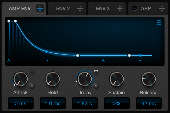 Envelopes are used to control the volume of the Patch over time. They can also be attached to other parameters.