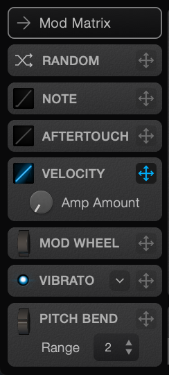 This section shows various Modulation Sources. Click and drag them to a control to program the synth.