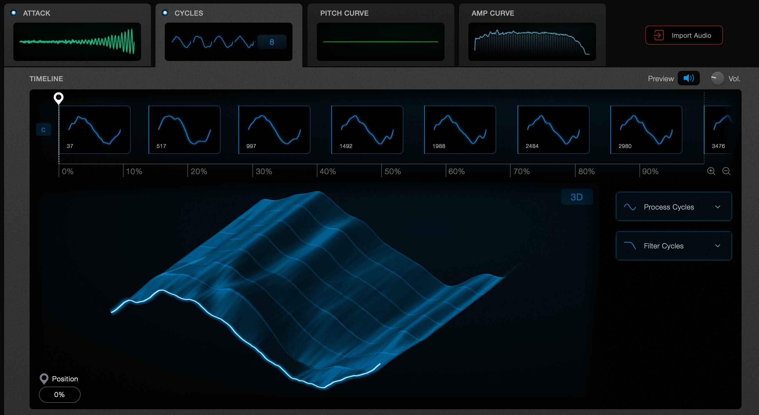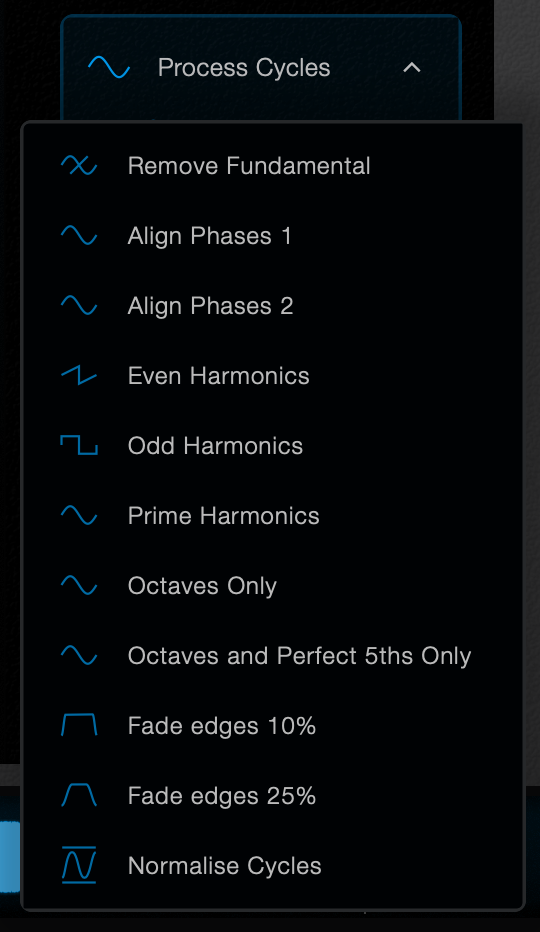 - Delete Cycles removes selected cycles from the wavetable. At least one cycle must remain