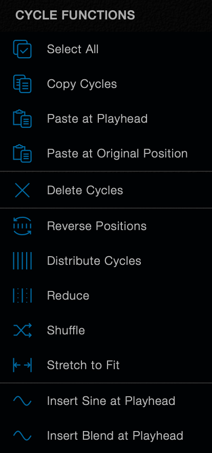 - Paste At Playhead pastes copied cycles, placing the first cycle at the playhead position