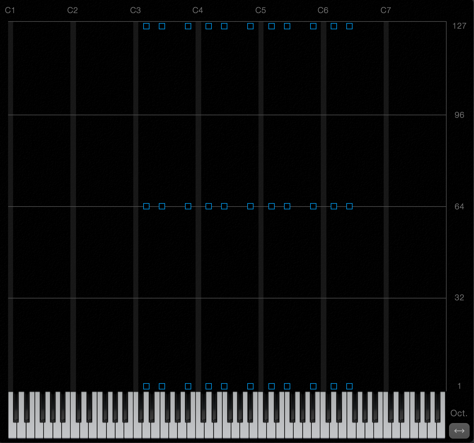 - Distribute Velocities For each note in the map, if there are more than one sound, they will be equally distributed vertically in the map. If there is only one sound, it will be centered vertically.